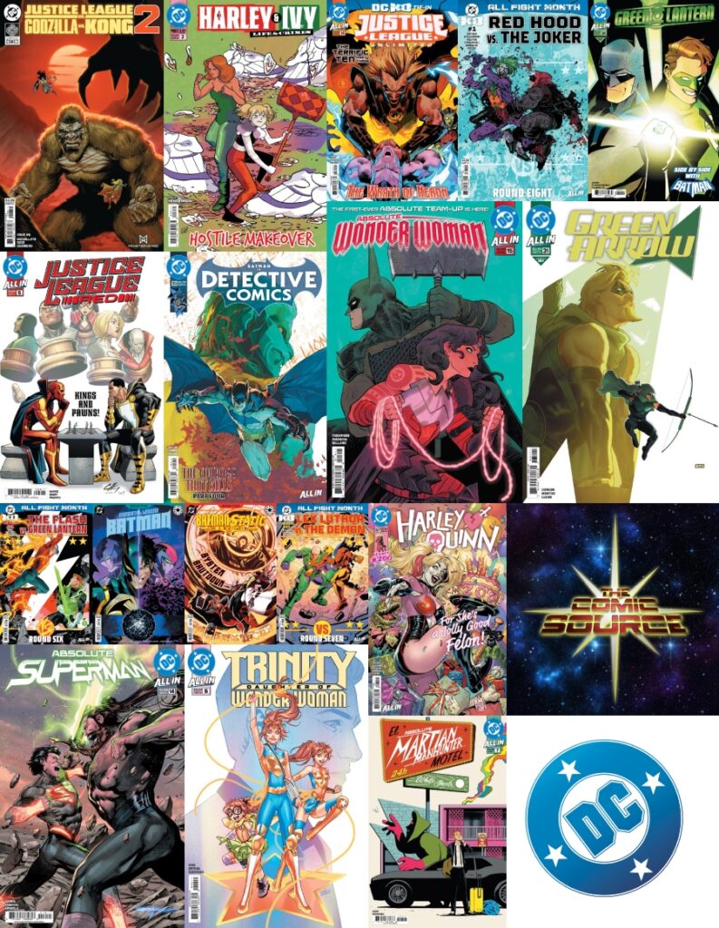 Jace and Rocky return for another Comic Boom! / Comic Source DC Spotlight for December 24, 2025, tackling an extra-stacked 17-book week before DC takes New Year’s Eve off, with the conversation moving quickly through reactions, standout art, and where each issue lands in their rankings. The slate includes Harley and Ivy: Life and Crimes #2, which flashes back to Harley and Ivy getting together and Harley cutting ties with the Joker under Erica Henderson’s full cartooning package; Batman/Static Beyond #2, an Elseworlds team-up that still feels light on world setup as a jumping-on point; Immortal Legend Batman #5, another Elseworlds entry where the shadow-driven approach and a Bruce-to-Joker turn become a sticking point despite strong visuals; The Flash #28, highlighted by the Jay Garrick vs. Guy Gardner matchup and debate over how the fight is contructed; Harley Quinn #57 / Legacy #200, which resolves Elliot Kalan’s Althea Clang storyline while splitting opinions due to sharply contrasting art styles; Superman #33, focused less on Superman himself and more on Lex Luthor’s DC KO battle with Etrigan and its potential long-term ramifications; Justice League Red #5, which heads toward its finale with Red Tornado revealed as the Crimson Cloud and Clayton Henry’s Power Girl art drawing praise; Justice League vs. Godzilla vs. Kong 2 #6, escalating its multiversal chaos with Martian Manhunter becoming a kaiju and Wally West stepping into the spotlight; and Justice League Unlimited #14, a DC KO tie-in where Mr. Terrific leads the Terrific Ten into Hell to confront Neuron, forcing characters to sacrifice core aspects of themselves at the River Styx. Higher on the list, Green Lantern #30 (“Frenemies”) stands out for its Hal Jordan and Batman team-up that blends humor with a heartfelt acknowledgment of shared trauma; Trinity: Daughter of Wonder Woman #6 delivers an emotional centerpiece as Trinity spends a day with Steve Trevor and reveals how his return from the afterlife is set in motion; Detective Comics #1104 (“The Courage That Kills Part 4”) hooks hard with Batman questioning his judgment as a fear-killing infection spreads and a familiar adversary is teased; and Green Arrow #31 closes Chris Condon’s run with a coda-like, emotionally grounded finale that ties its mystery together. The Absolute line is heavily represented with Absolute Martian Manhunter #7, a tonal reset that leans into Javier Rodríguez’s tactile, experimental visuals; Absolute Superman #14, which wraps its second arc by resolving the Ra’s conflict, shifting Superman’s look, and closing out the “first year” phase; and Absolute Wonder Woman #15 (“The Mark of Hecate”), a Batman-focused duet issue built around strategy, tension, and long-term implications. Rounding out the discussion is Joker vs. Red Hood (DC KO), a title that sparks one of the biggest ranking splits of the week and fuels broader frustration over Joker fatigue, even as it still lands high for Rocky. The guys finish up by ranking every book and along the way, reflect on DC KO’s structure, consequences, and moral tension, the dominance of DC titles in current pull data, and how this final DC Spotlight of the year encapsulates both the ambition and excess of DC’s 2025 output.