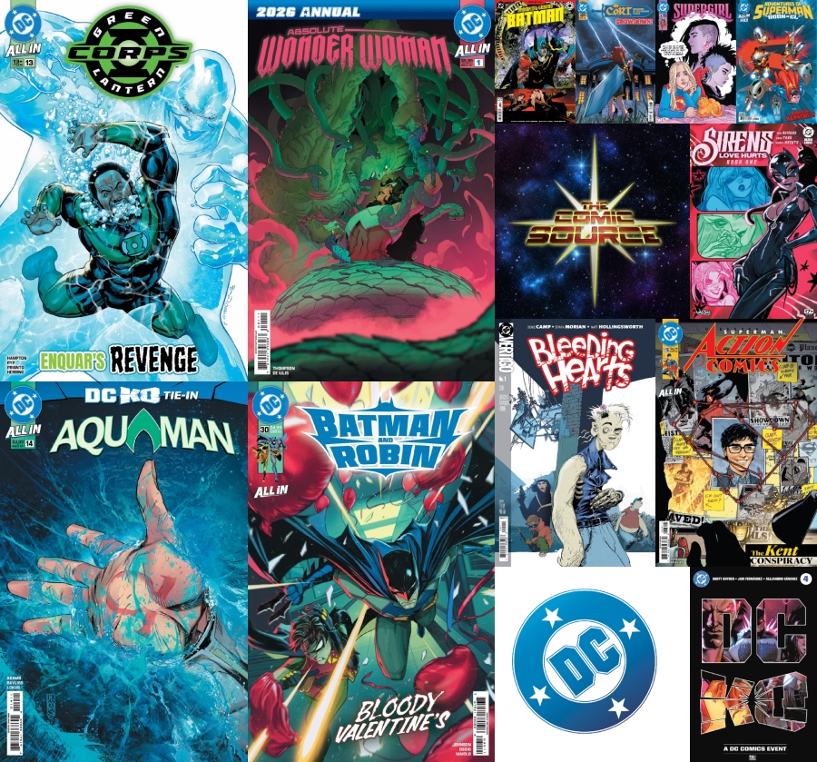 For the week of February 4, 2026, Jace and Rocky break down twelve DC Comics releases in a Comic Source / Comic Boom DC Spotlight episode that spans finales, debuts, event developments, and major character revelations. The discussion opens with Batman and Robin #30, the final issue of Philip Kennedy Johnson’s run, focusing on the conclusion of the Quiet Man storyline and the evolution of Bruce and Damian’s father–son dynamic. Attention then turns to Bleeding Hearts #1, the first original title of DC’s revived Vertigo line by Deniz Camp and Stipan Morian, introducing a zombie-centered narrative that explores identity, empathy, and survival from an unconventional perspective. Aquaman #14 by Jeremy Adams delivers significant mythology expansion, revealing the identity and history of Mera’s mother, explaining Aquaman’s defeat in the DC KO tournament, and setting up the arrival of Emperor Aquaman. In Green Lantern Corps #13, Morgan Hampton advances the War for Oa arc with Fatality’s transformation into an Indigo Lantern, the resolution of Enquar’s storyline, and major implications for the emotional spectrum. The hosts also discuss Immortal Legend Batman #6, concluding the Elseworlds saga with teases of future incarnations of the Bat-family, and C.O.R.T.: Children of the Round Table #6, which resolves the first arc while positioning Mordred, Morgan Le Fay, and the modern Knights for future conflict. Sirens: Love Hurts #1 launches a Black Label series centered on Harley Quinn, Poison Ivy, Catwoman, and Black Canary investigating a string of murders tied to emotional vulnerability, while Adventures of Superman: Book of El #6 continues Philip Kennedy Johnson’s Warworld saga with Superman’s illness and Otho-Ra’s race against death. Action Comics #1095 shifts focus to Pete Ross as he grapples with learning Clark Kent’s secret, DC KO #4 reshapes the tournament with the arrival of the Absolute Universe and Lex Luthor as the last combatant standing, Absolute Wonder Woman Annual #1 delivers a mythological standalone centered on Medusa and compassion over conquest, and Supergirl #10 embraces Silver Age-inspired storytelling with a Valentine’s Day tale involving pink kryptonite and looming trouble in Kandor. The guys finish up a run down of collected editions and with their final rankings of all the week’s books