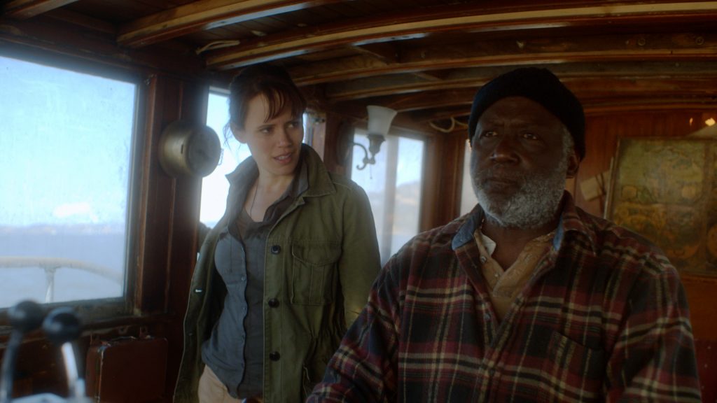 Emily Swallow: It was, haha..We were never on a soundstage. We shot everything on that tiny little boat. You couldn’t take out a wall to try to get the camera in. We did do some of it docked with the boat covered with a tent thing and then a bunch of smoke being blown in. But we also did plenty of it out. We were shooting up in Sausalito and the San Francisco Bay, and we were out in the water a lot. That boat looks like it could sink any moment and it felt it could sink any moment, haha…Which looking back, since we didn’t die, I can say, “Oh, it was really useful that it felt that.” Haha…