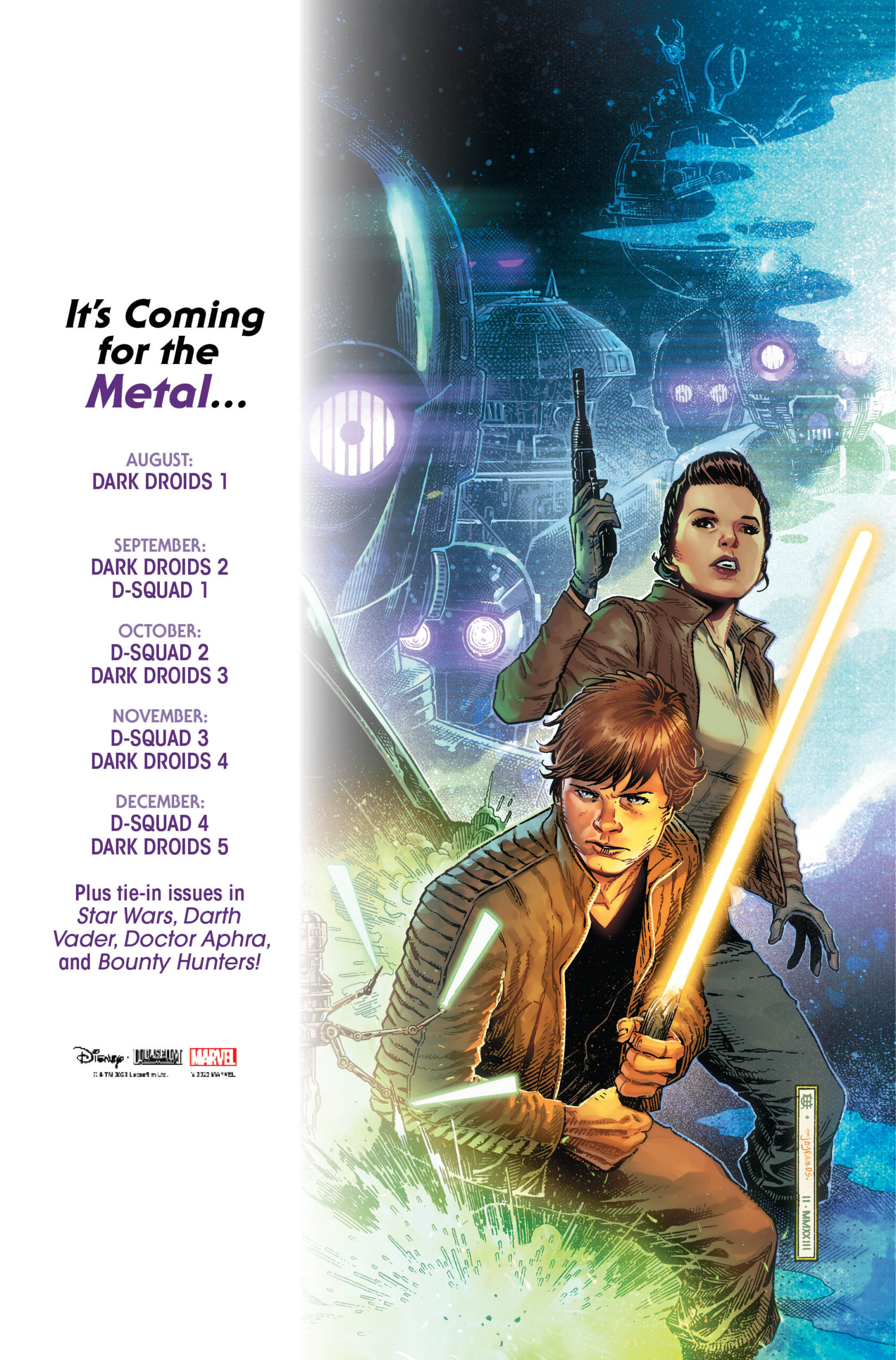 STAR WARS: DARK DROIDS will unfold as a main series crafted by writer Charles Soule and artist Luke Ross, the formidable duo behind other Star Wars comic crossover epics such as War of the Bounty Hunters. Additionally, there will be a spinoff limited series, STAR WARS: DARK DROIDS – D-SQUAD. The story will intertwine with four ongoing series that currently bridge the gap between the films The Empire Strikes Back and Return of the Jedi: STAR WARS, STAR WARS: DARTH VADER, STAR WARS: DOCTOR APHRA, and STAR WARS: BOUNTY HUNTERS.