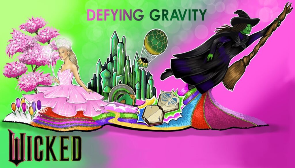 Expertly directed by acclaimed filmmaker Jon M. Chu, WICKED tells the untold story of the witches of Oz, starring Cynthia Erivo as Elphaba and Ariana Grande as Glinda. The float’s design encapsulates the themes of friendship, self-discovery, and courage that define the film, offering a visual journey to the fantastical world of Oz.